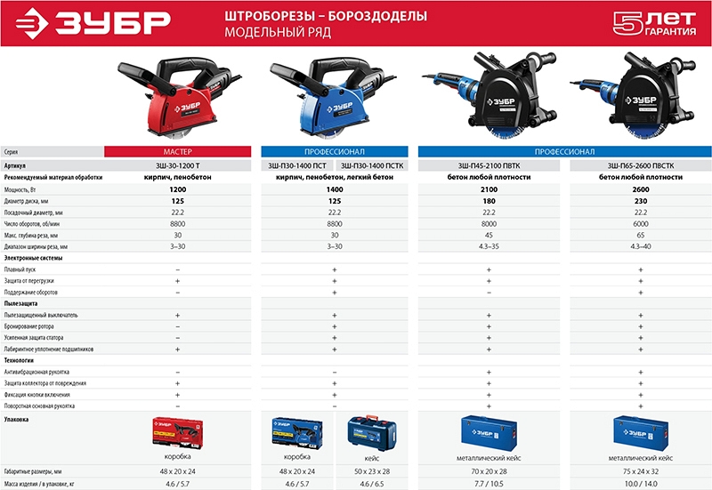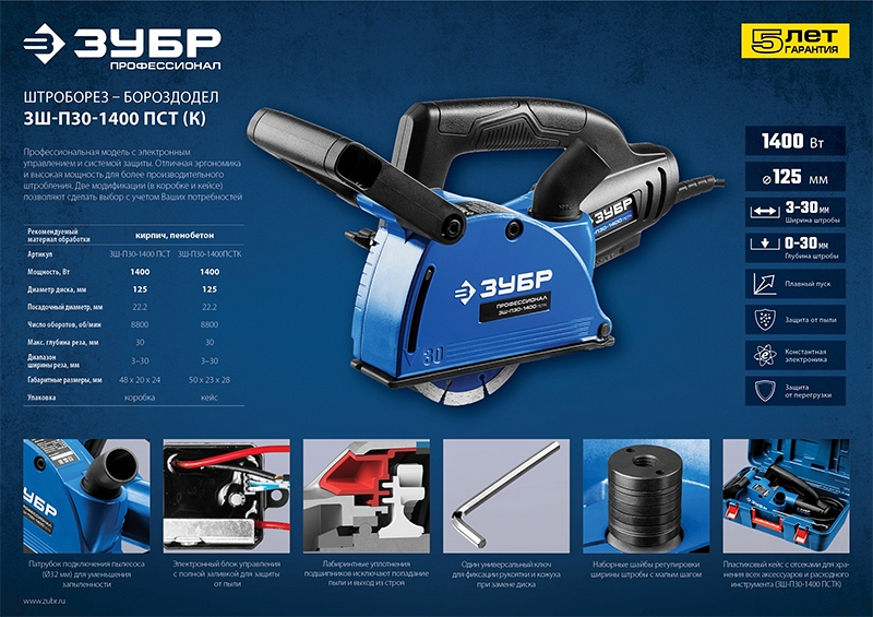 Преимущества штробореза Зубр Профессионал ЗШ-П30-1400 ПСТ: