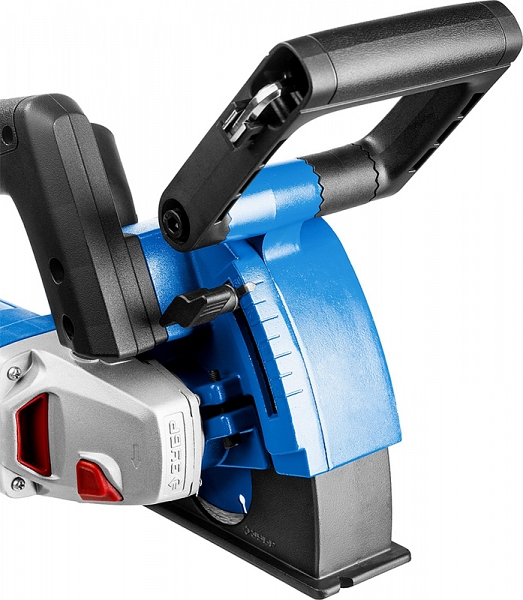 - Закрывающий зону работы подпружиненный кожух предотвращает разброс продуктов реза при любой глубине штробы